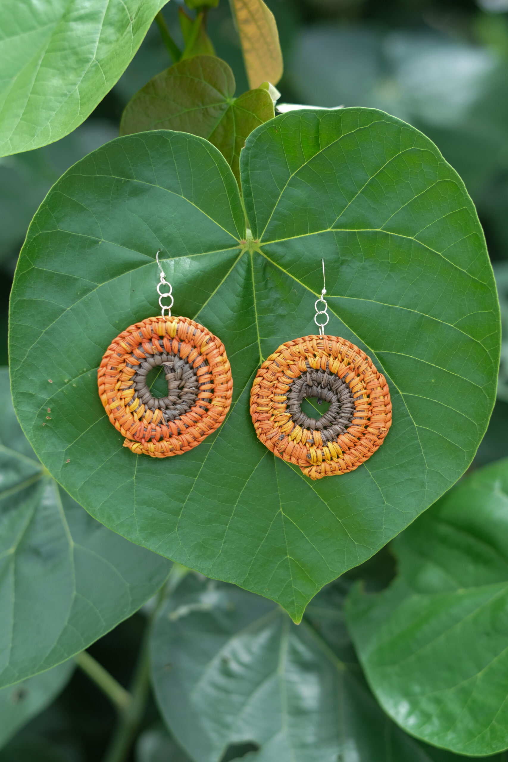 These woven earrings are made from gunga (pandanus), a plant carefully harvested, stripped, dyed using natural bush materials, and woven by hand. In the words of artist Ruth Nalmakarra, they’re made “to make us pretty”—celebrating beauty, culture, and connection to Country.