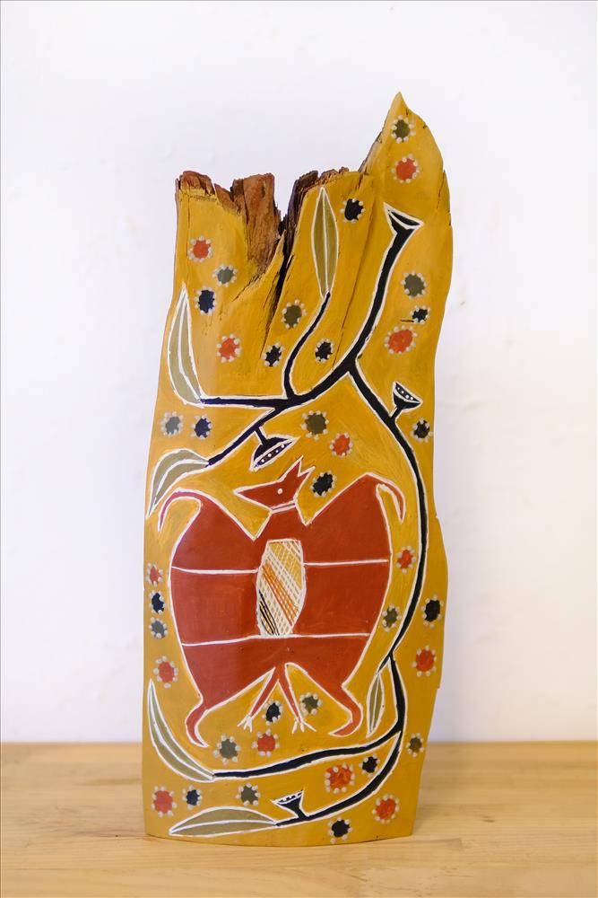 “All those warrnyu are living there at Barra’ŋur – buŋgan warrnyunhan – smelling that smell of sweet flower [from the Melaleuca trees] in the air. They are noisy! Big family there – big ones, small ones, baby ones. They calling out that gurtha (burning fire) – with their big noise. Then that fire came and they flew to a different camp – my camp, Yirritja place; Muwaṉgi, Ŋaliyindi – deep billabong that one. But all that area is one, all Ganalbiŋu. We follow that gapu (water) with our song, meeting other tribes. That story is long time one, old one. There’s more to that story, but not for here.”