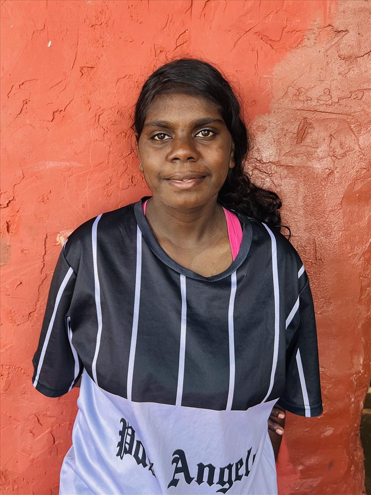 The new shoots of the pandanus palm are plucked from the central crown of the tree. The fine serrated edges are removed by running a fingernail down each side of the frond, which is then split into two and peeled to expose the inner fibre.  Using extensive knowledge of local vegetation, these strips are then dyed using colours extracted from the leaves, roots and bark of selected native plants and left to dry in the sun. Following this lengthy process, the artist weaves the prepared fibres into their desired form.
